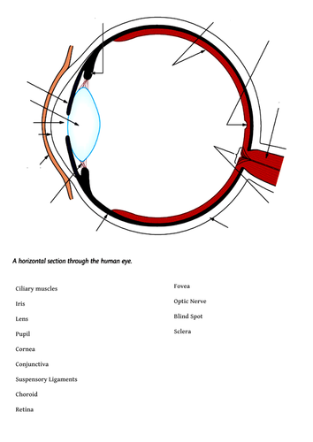 Anatomy of the Eye Diagrams for Coloring/Labeling, with Reference and ... This printable contains 13 clear and simple cross sectional diagrams of the human eye. They photocopy well and are great for use as a labeling and coloring exercise for your students. The core eye anatomy diagram, designed as the labeling exercise, has a fully colored and labeled reference chart to go with it.