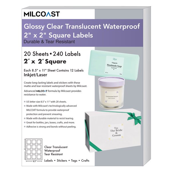 Milcoast Glossy Full Sheet 8.5" x 11" Clear Translucent Waterproof Adhesive Sticker Paper Labels - 25 Sheets