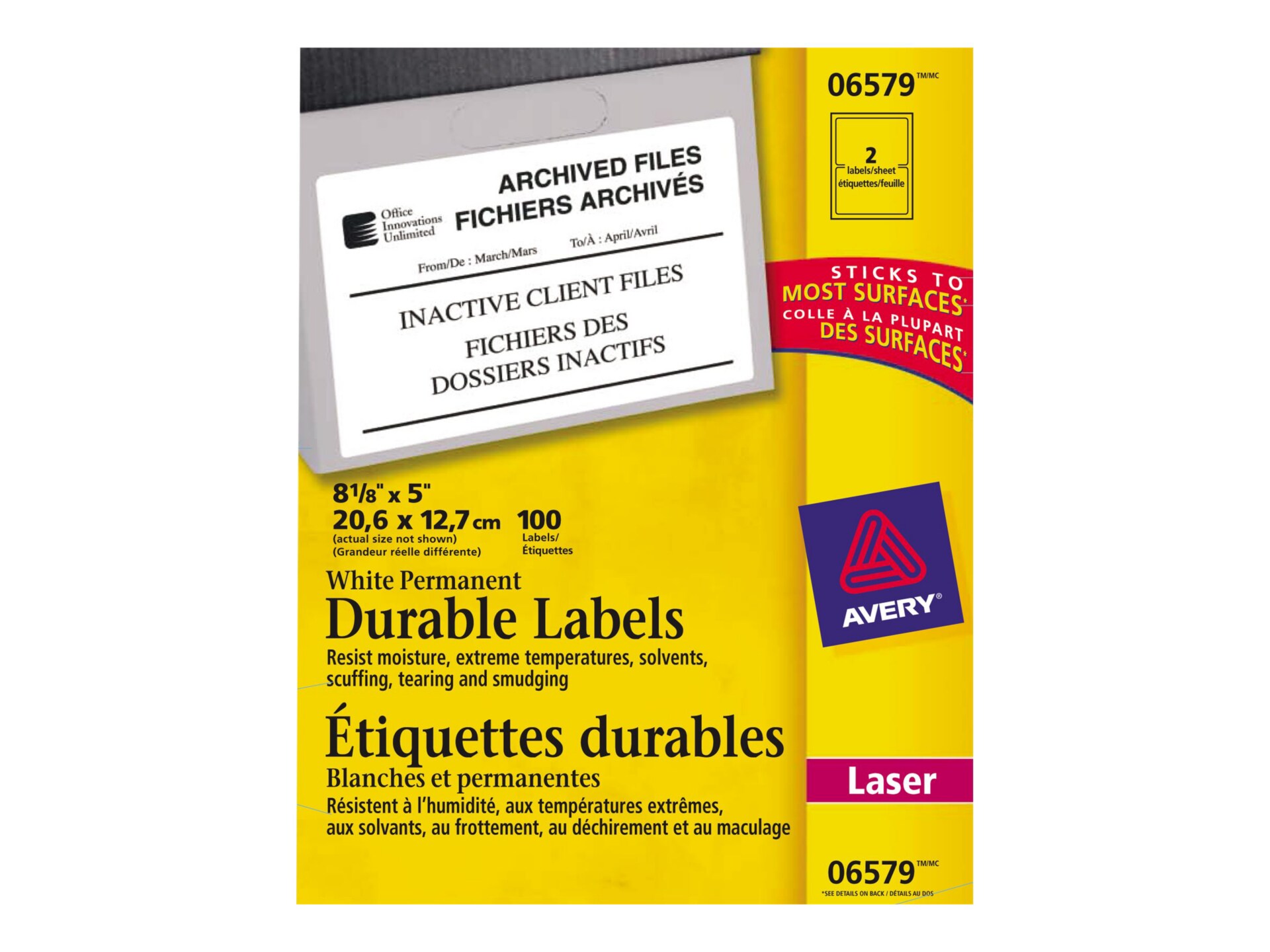 UL® Labels | Avery Dennison | LPM Preapproved label materials remove risk and add benefits to drive profits Our portfolio consists of six highperformance base materials combined with commonly used inks, thermal ribbons, overlaminates and adhesives. Read more arrow_forward Streamlining the UL® approval process through file adoption Avery Permanent Durable I.D. 6579 - labels - 100 label(s) - CDW Buy a Avery Permanent Durable I.D. 6579 - labels - 100 label(s) - 5 in x 8.1 in or other Paper & Labels at CDW.com. Hardware; Software; Services; IT Solutions; Brands; Research Hub; ... identify each box's contents with these White Permanent Durable ID Labels. Print them from your laser printer and adhere the labels to paper, glass, plastic ...