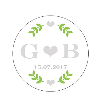 Personalized Round Sticker, Green Leaf with Sliver,Wedding Favors Customs Round Sticker,Labels, Wedding Gift Box Decor